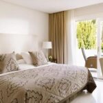 The Puente Romano Beach Resort is a five-star hotel located on the beachfront, offering a wide range of services and facilities to ensure a comfortable and enjoyable stay for its guests. The hotel features rooms and suites, in addition to three private villas. The charming Andalusian style of the hotel is reflected in the blue-and-white tiles on its whitewashed walls and terracotta-tiled stairs, inspired by local village architecture. The lush, expansive grounds are dotted with swimming pools and beautiful gardens, home to over 400 plant species from around the world, including palms, geraniums, and bird-of-paradise flowers, scented with night-blooming jasmine. The rooms are thoughtfully designed to ensure maximum privacy, clustered in groups named after Andalusian towns such as Zahara, Ronda, and Nerja.